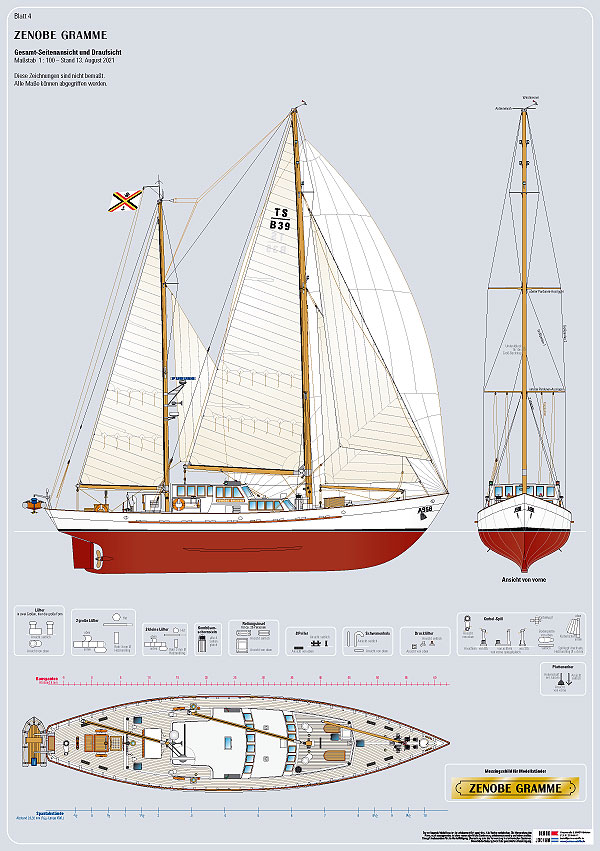 1. Linienriss auf Außenhaut 2. Beleg- und Takelplan
